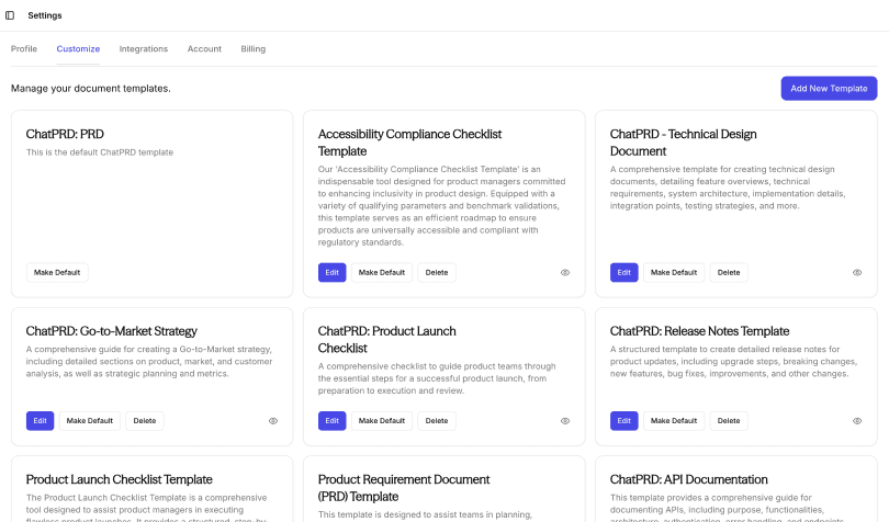 - Start with the basics: Begin with ChatPRD's default templates to understand the structure.