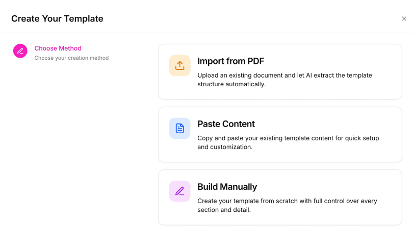 - You can add a new template manually, by pasting in text, or uploading a PDF.
