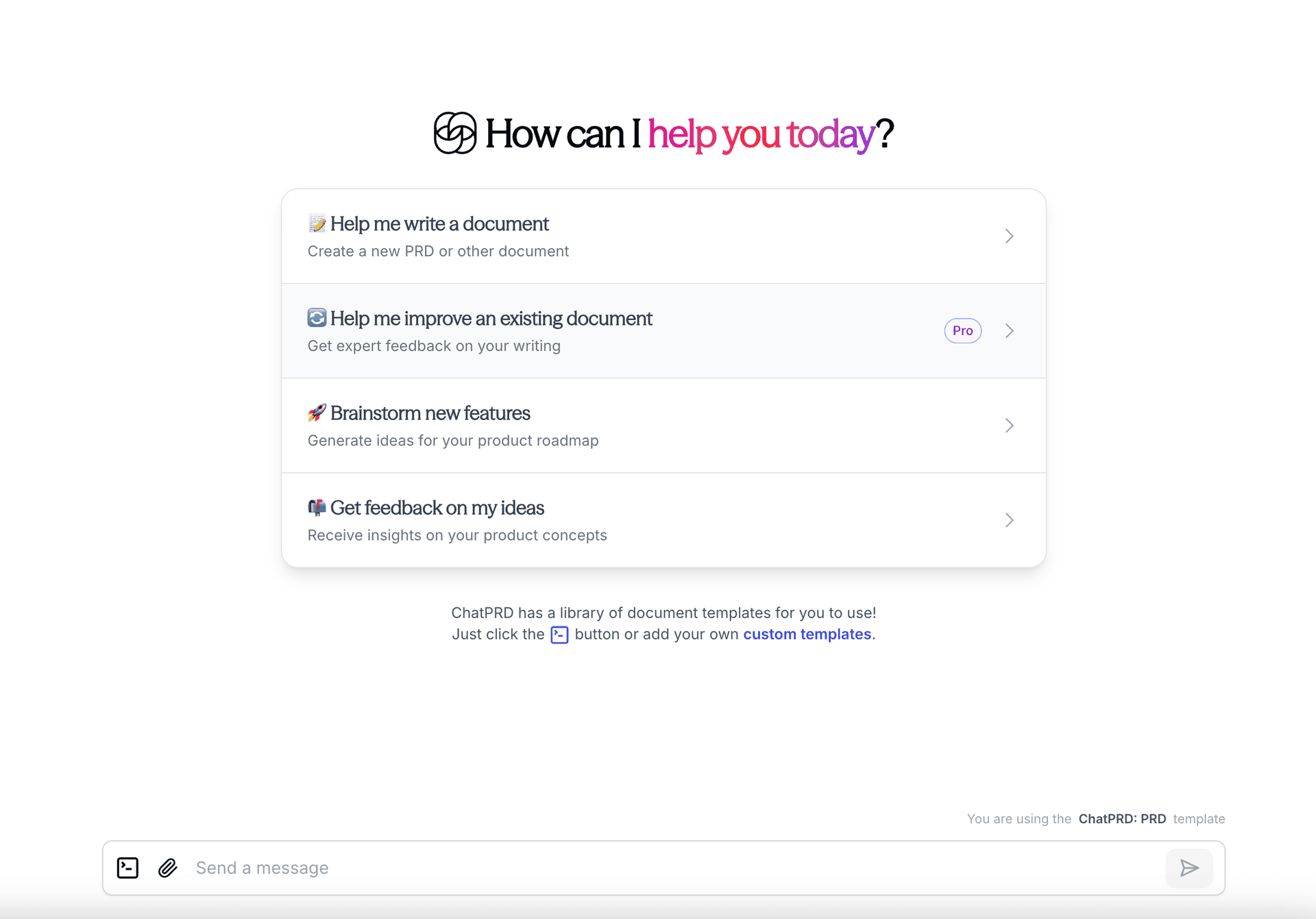 - ChatPRD will respond based on your selected template and the context of the conversation.