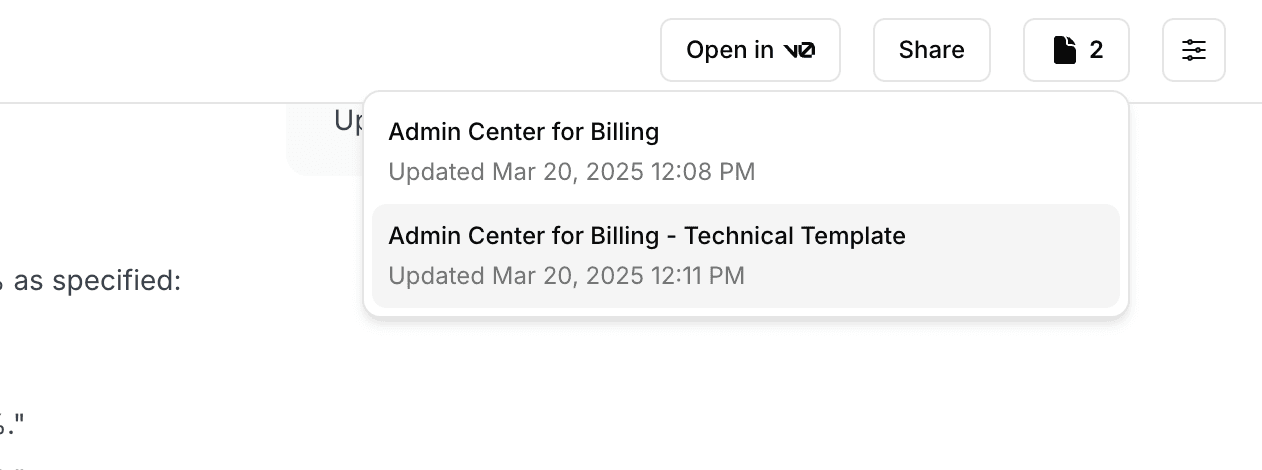 - Use the document switcher in the chat header to navigate between documents.