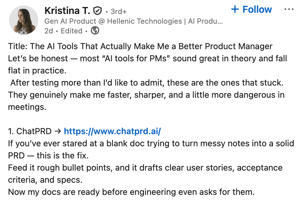 And ChatPRD got listed among some AI tools that actually help PMs!: