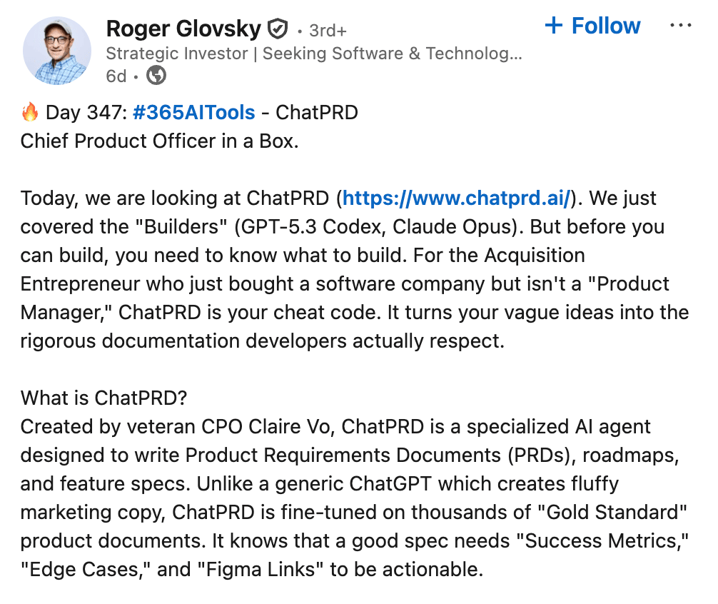 This week’s ChatPRD update features a redesigned marketing site, 7 new AI-first templates, smarter file search, self-serve seat upgrades for Teams, performance improvements, and highlights from the AI community.