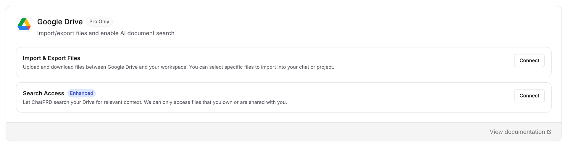 5. After successful authentication, you'll be redirected back to ChatPRD with the integration status showing as "Connected."